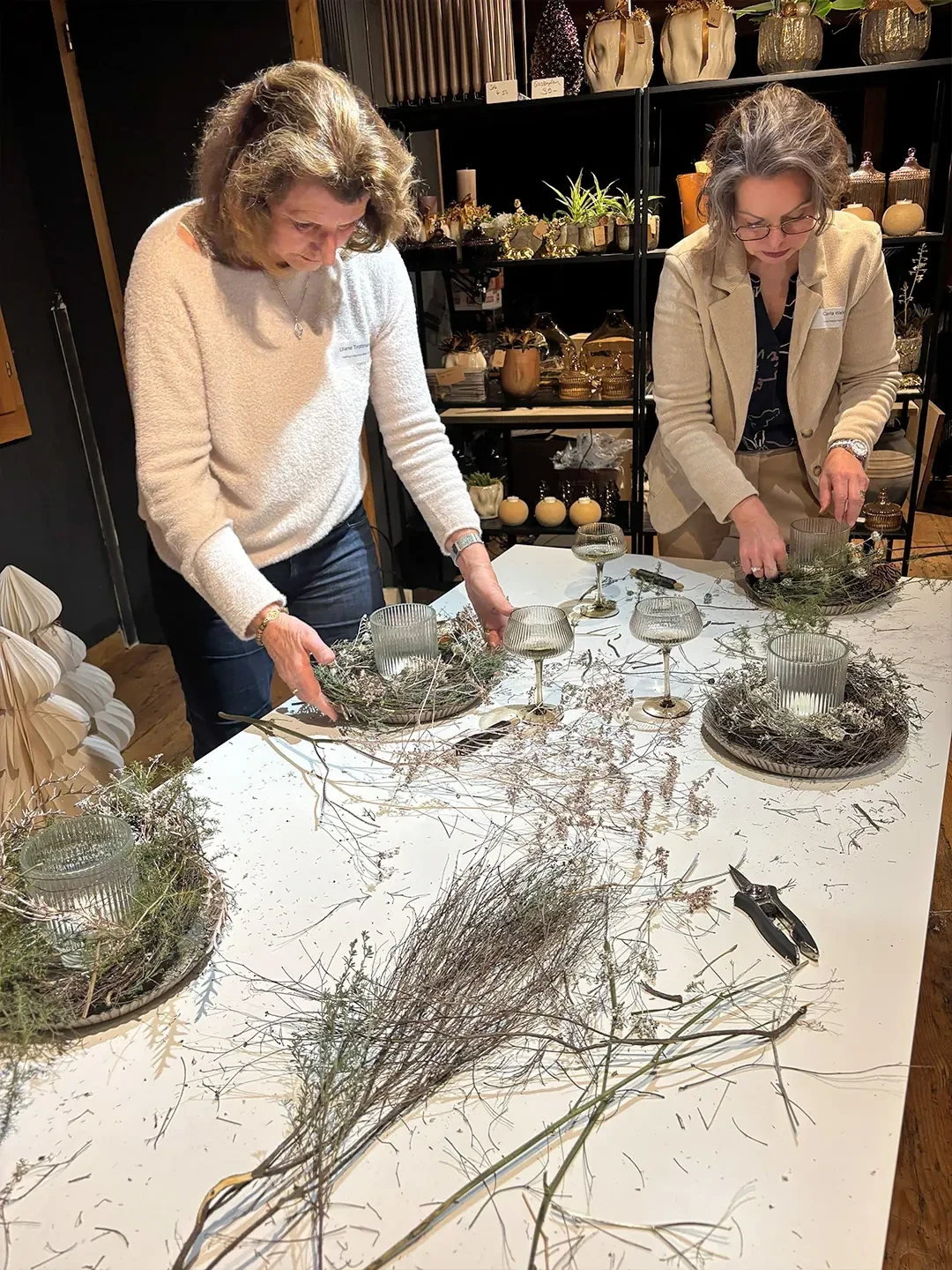 Im anschliessenden Workshop gestalteten wir ein Kerzengesteck mit Windlicht, das jede von uns mit grossem Stolz mit nach Hause nehmen durfte – ein Erlebnis voller Kreativität und Herz.
