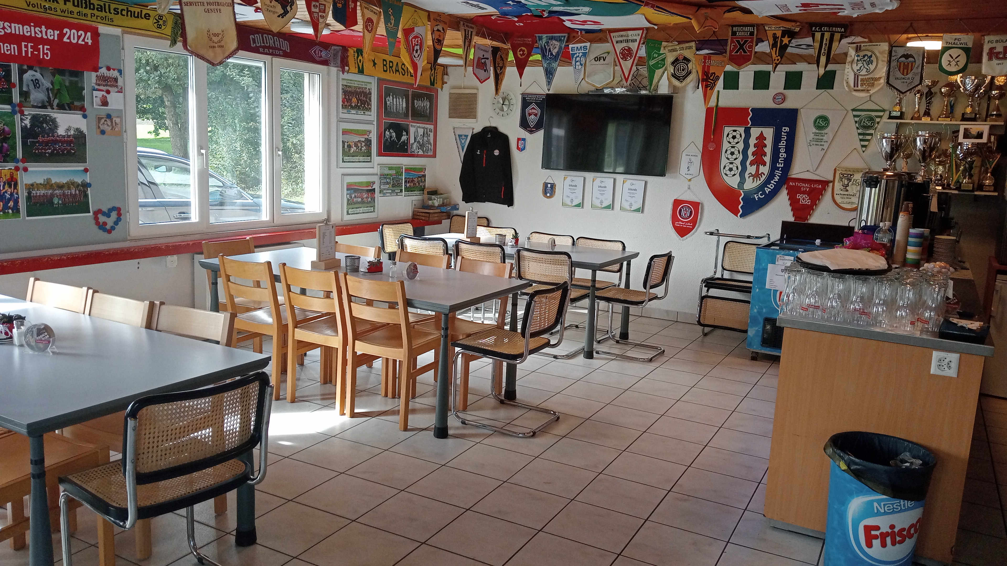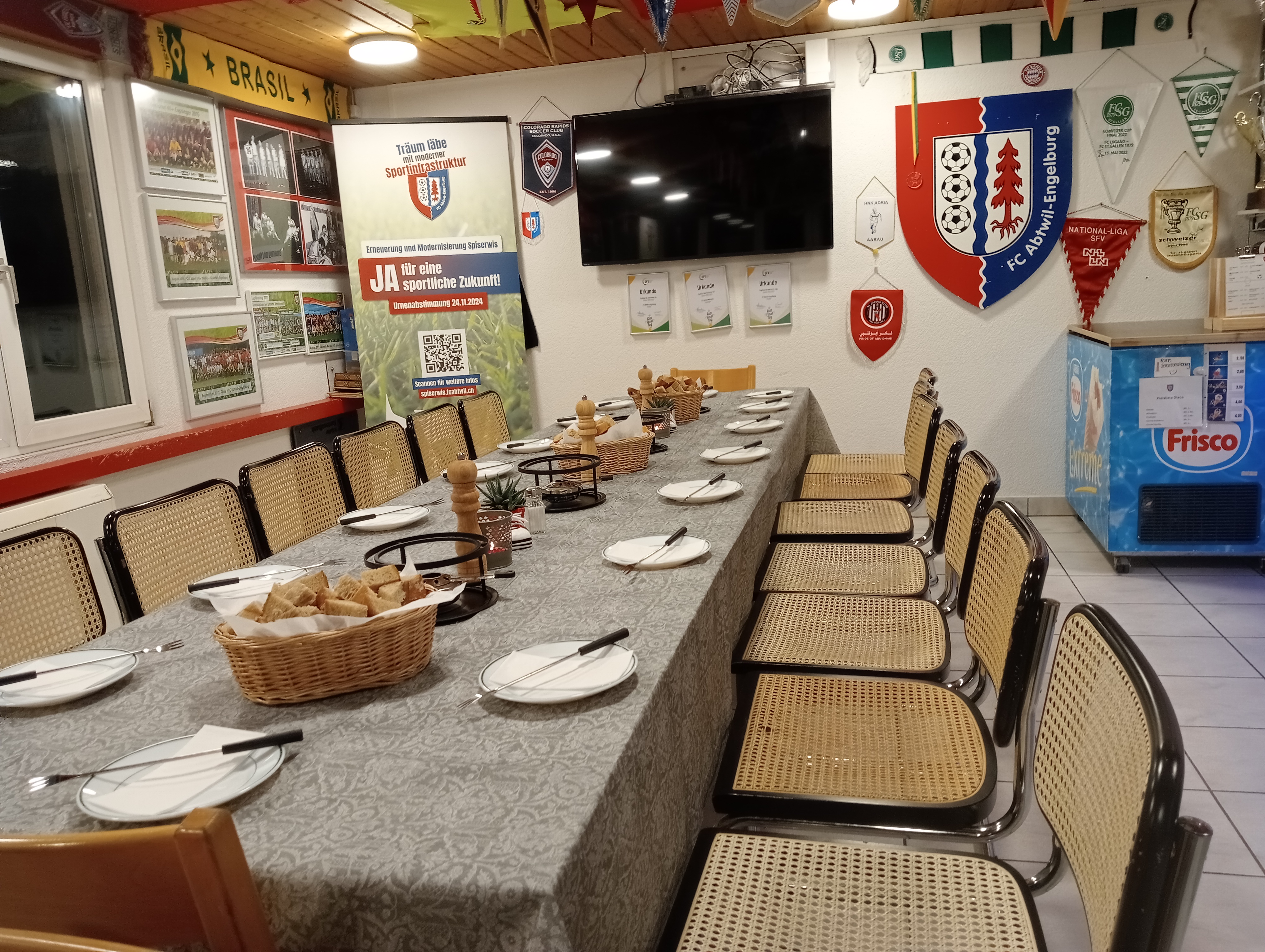Gemütliche Clubbeiz beim Fussballplatz Spiserwis in Abtwil mit Innenplätzen für bis zu 30 Personen und einer Terrasse für mit 50 Sitzplätzen.